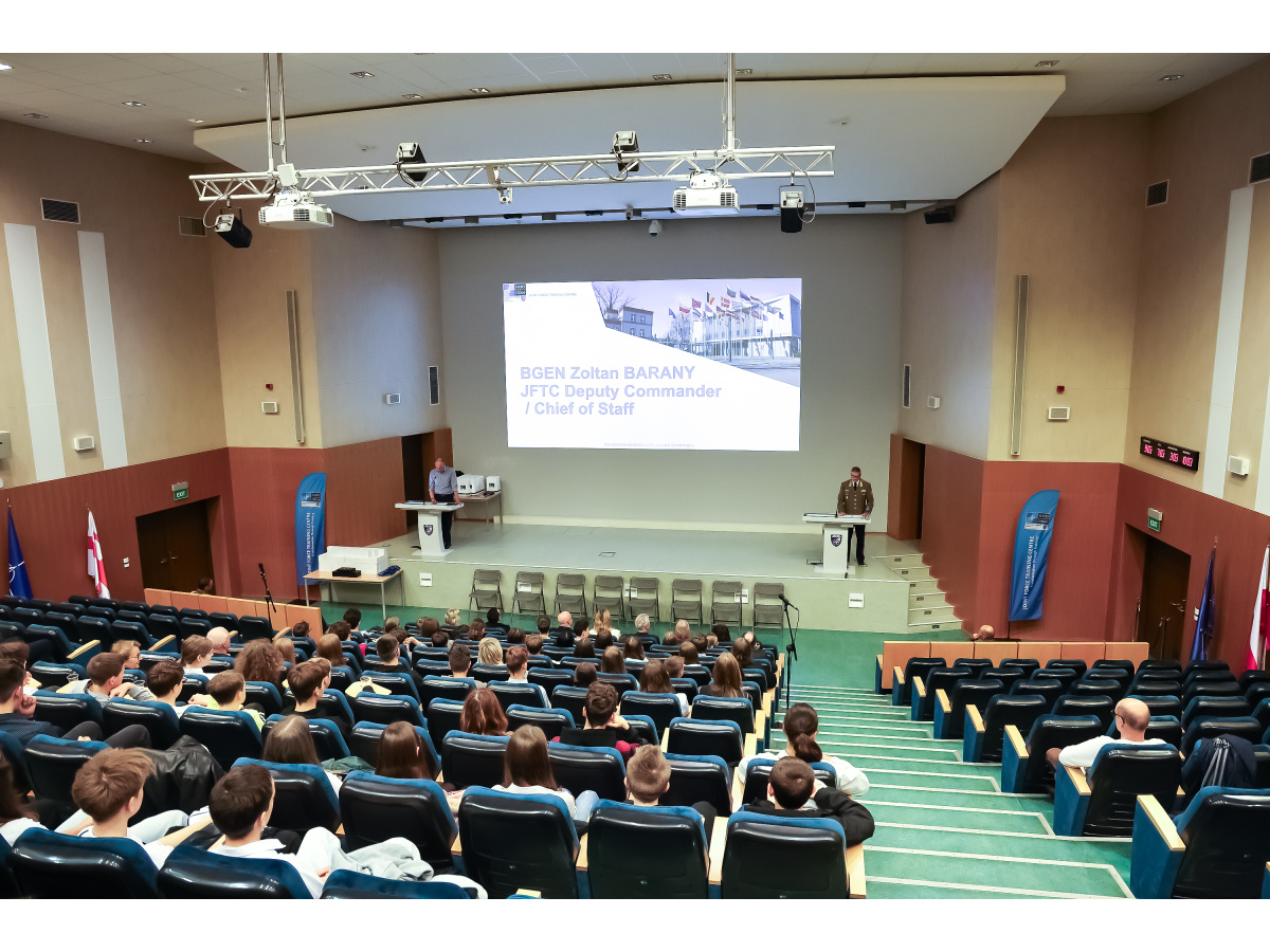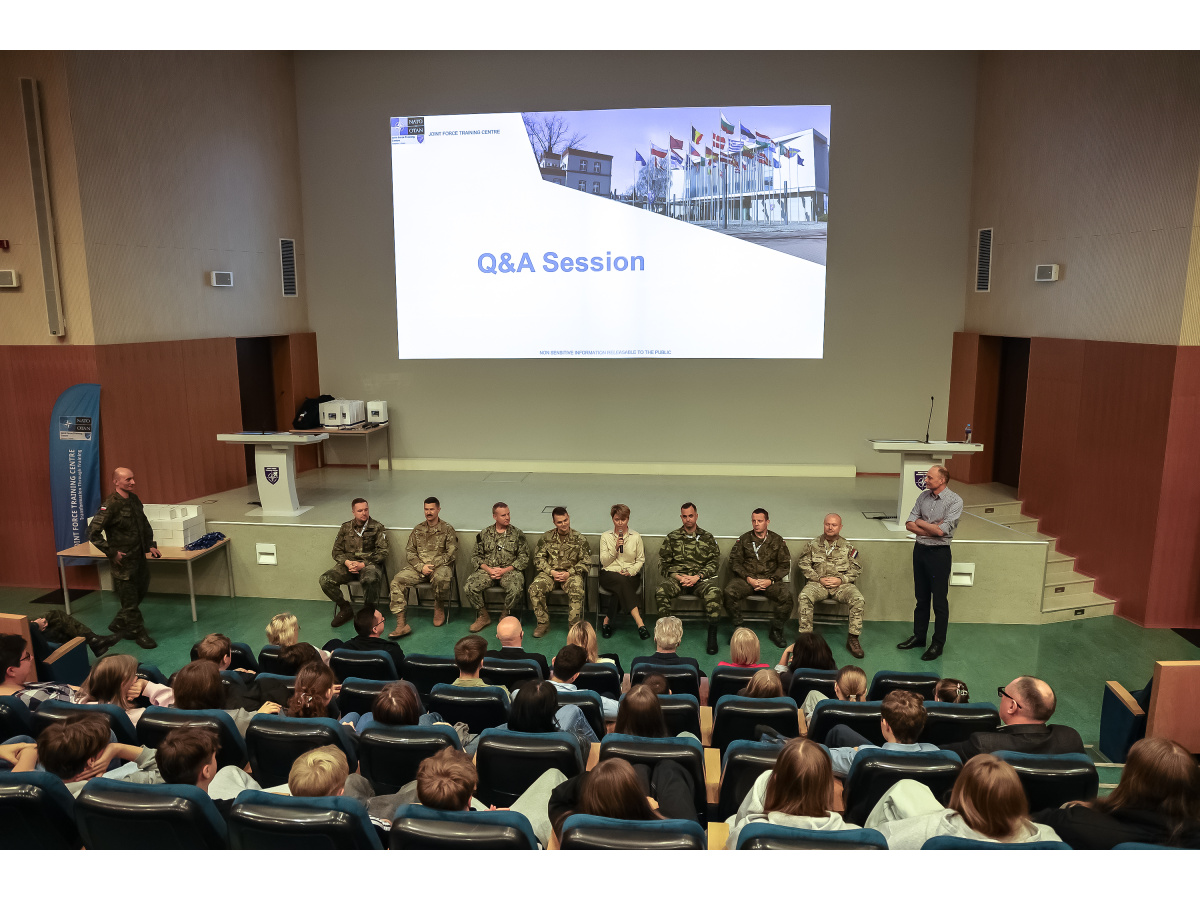 Podczas wydarzenia odbyło się wręczenie nagród laureatom Wojewódzkiego Konkursu Wiedzy o NATO, a następnie uczniowie mieli okazję wziąć udział w rundzie pytań i odpowiedzi z pracownikiem cywilnym i oficerami z różnych państw, służących na co dzień w JFTC. Pytania zadawali uczniowie szkół z województwa kujawsko-pomorskiego – zarówno po polsku, jak i po angielsku.