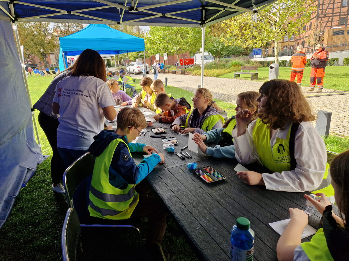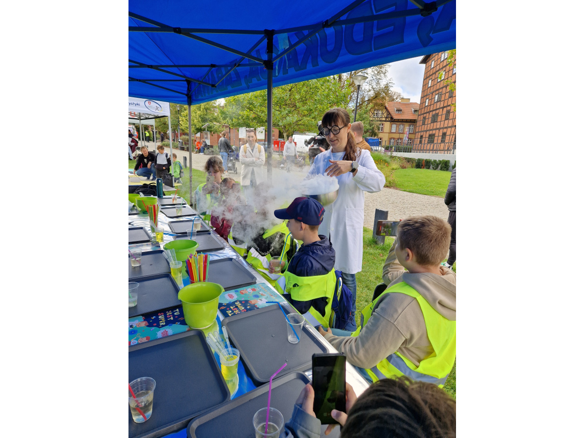17 września na bydgoskiej Wyspie Młyńskiej odbył się I Piknik Naukowy- Astrobaza. Cieszymy się, że mogliśmy w nim wziąć udział. Zwiedzanie zaczęliśmy od, stanowiska przy których mogliśmy wykonać kosmiczne ozdoby- breloczki i wisiorki. Następnie malowaliśmy ekologiczne torby na zakupy. Zwieńczeniem były warsztaty muzyczne z kosmicznymi dźwiękami oraz doświadczenia z suchym lodem. Wróciliśmy pełni wrażeń, wiedzy i chęci, by kontynuować naszą przygodę z kosmosem!