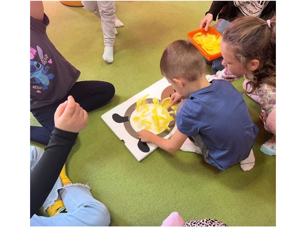 Zajęcia prowadzone przez pracowników Biblioteki mają charakter aktywizujący i twórczy – uczniowie rozwiązują zagadki, uczestniczą w rozmowach o ulubionych bohaterach literackich, a także wykonują prace plastyczne związane z tematyką książek.