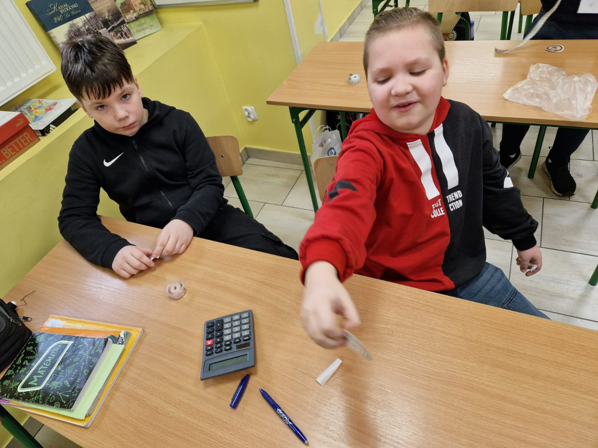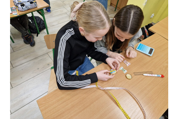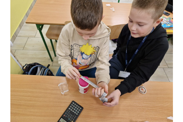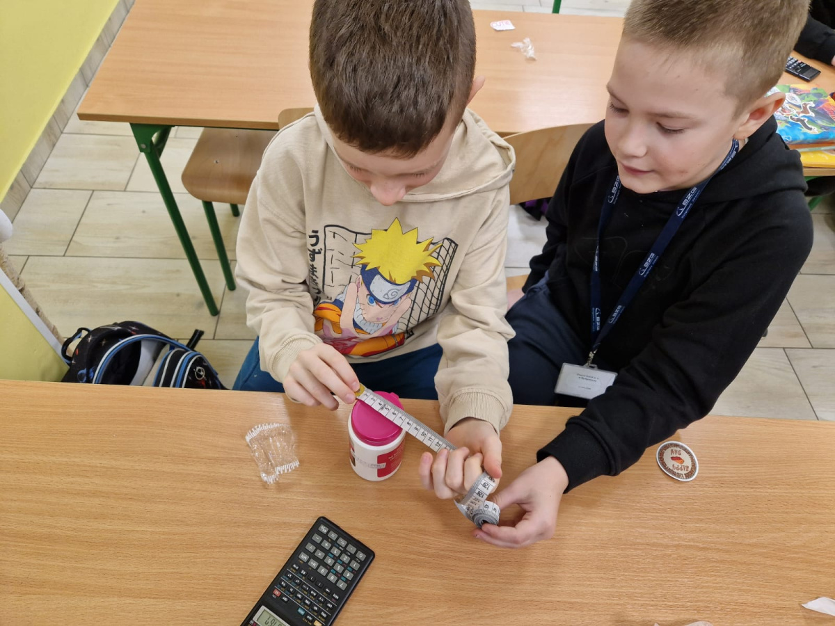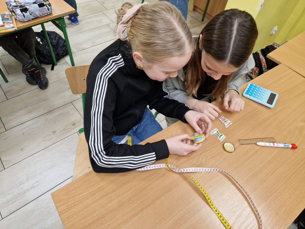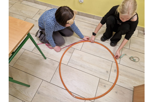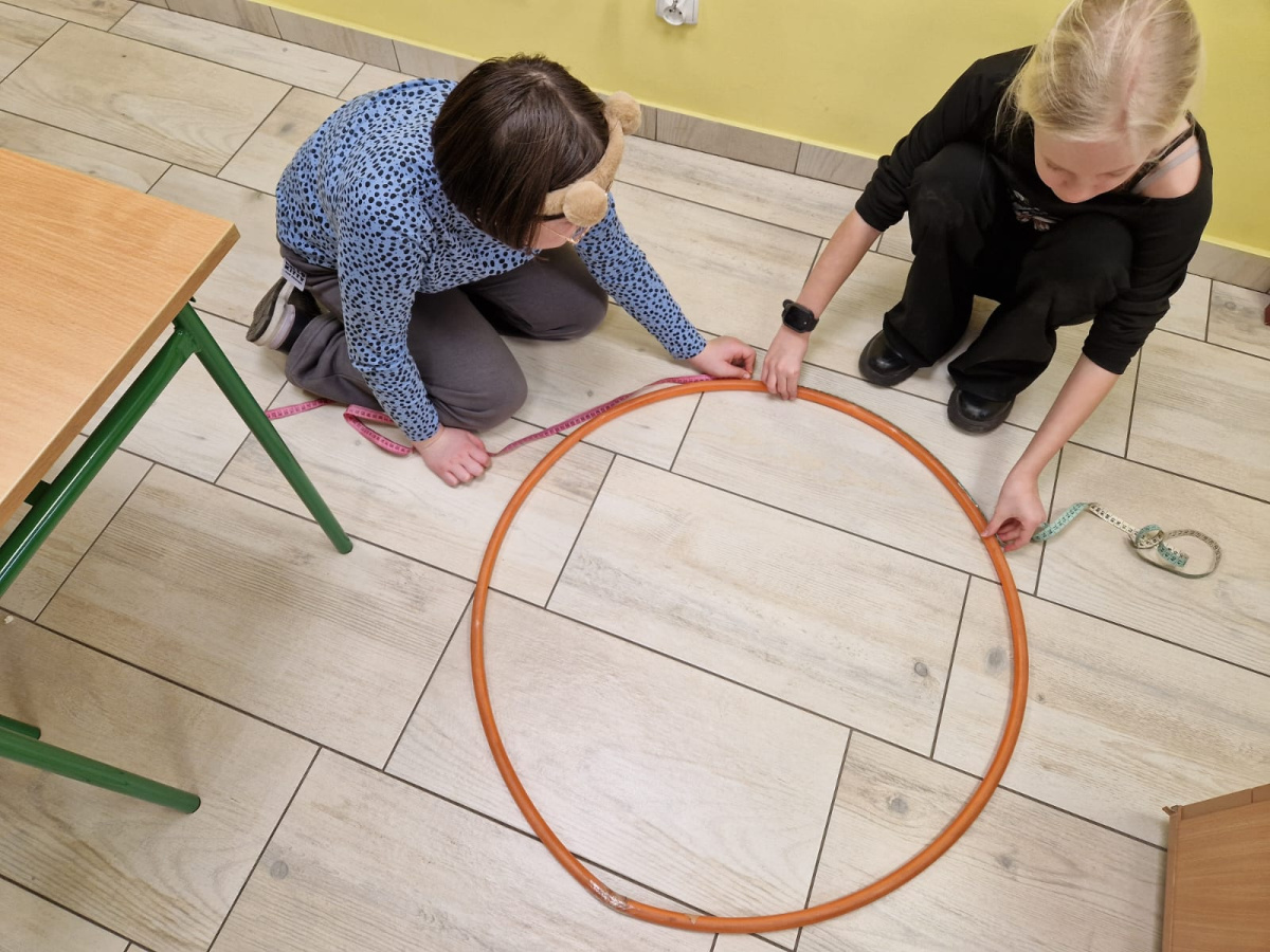 Młodzi Odkrywcy z miarą w ręku poszukiwali liczby π .