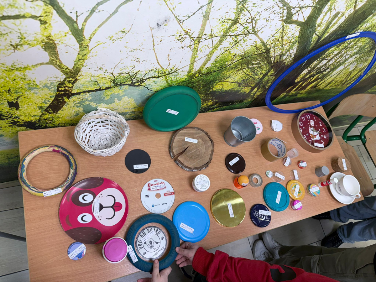 Wystarczyło zgromadzić jak największą liczbę okręgów- odszukaliśmy je w domach i w szkole. Najwięcej okręgów znaleźliśmy na sali gimnastycznej.