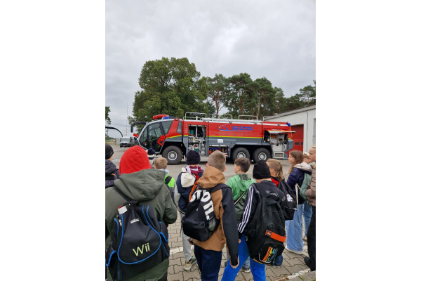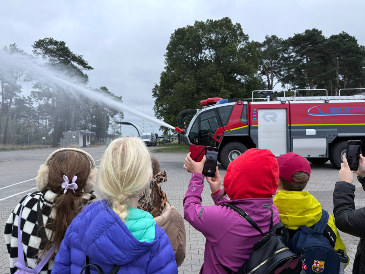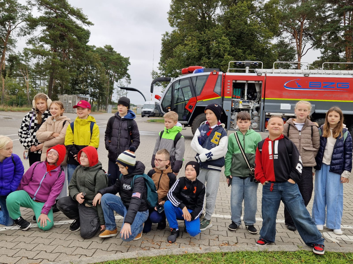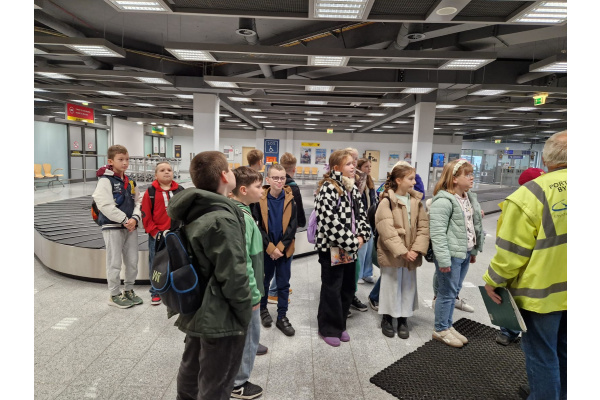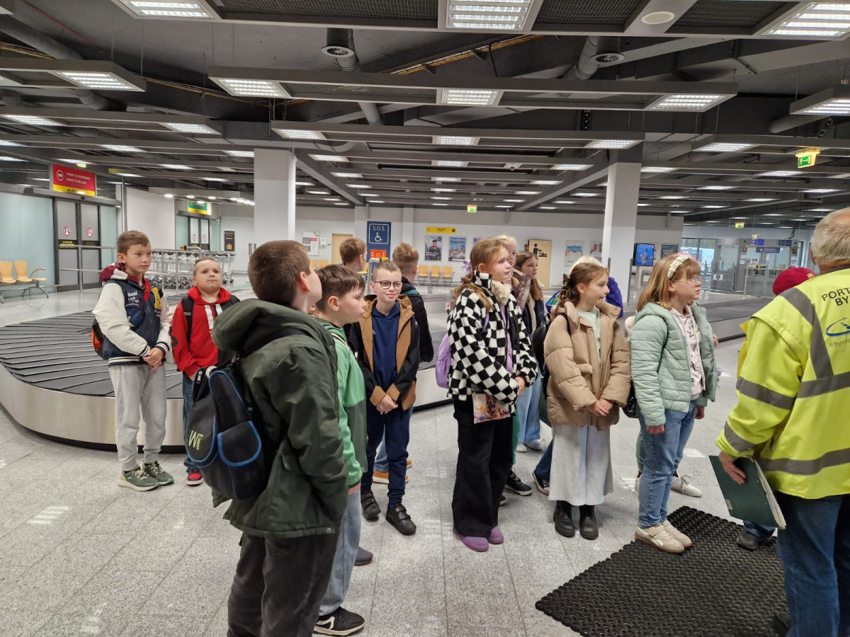 Poznaliśmy pracę obsługi naziemnej, straży granicznej oraz straży pożarnej. Dowiedzieliśmy się, że na naszym lotnisku pracuje również sokolnik! Przeszliśmy także kontrolę osobistą oraz odbyliśmy spacer po płycie lotniska.