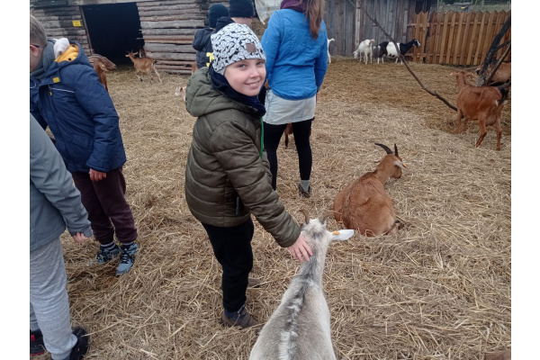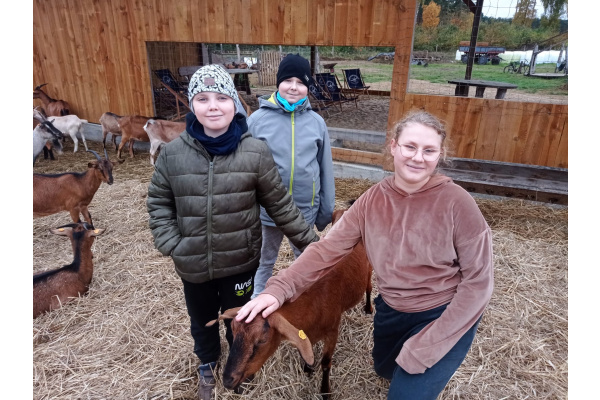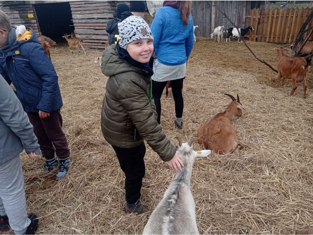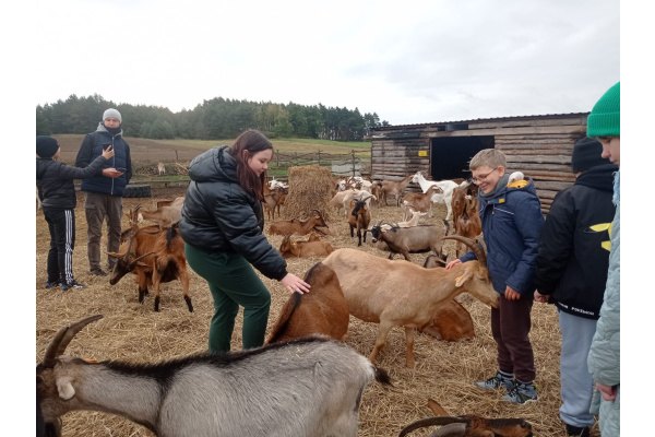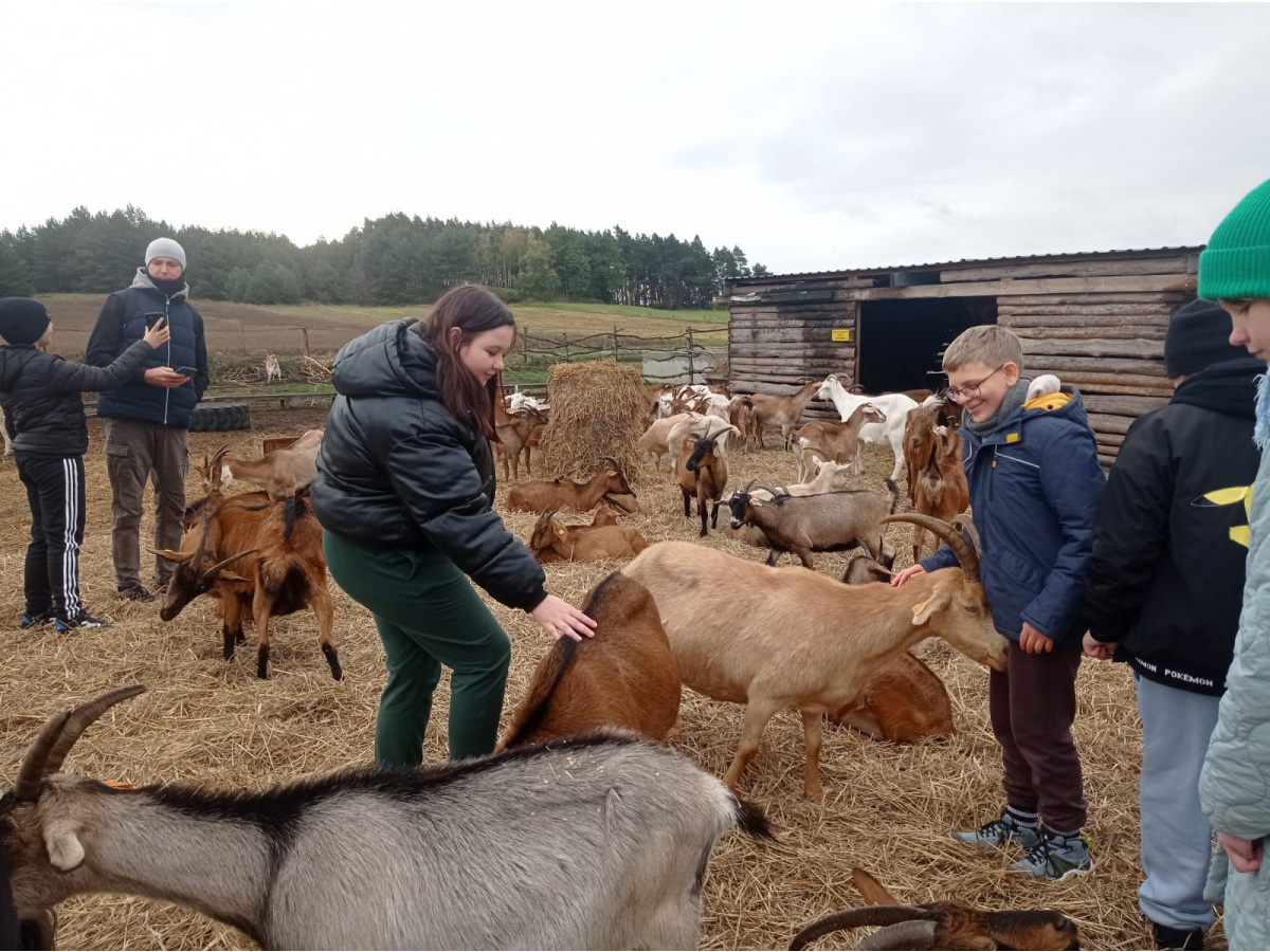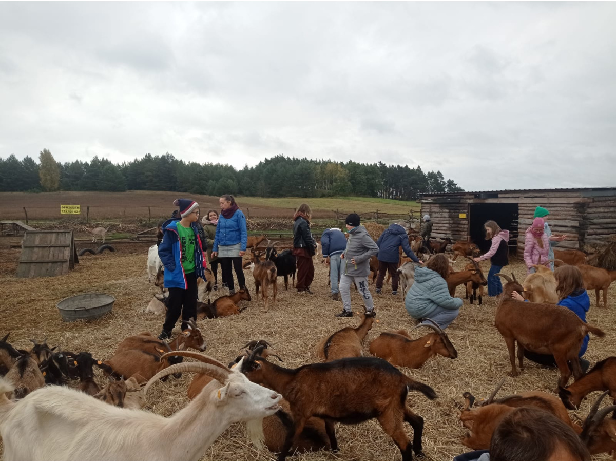 Nie zabrakło również pysznych smaków! Uczniowie spróbowali koziego sera, a na zakończenie wyjazdu czekało na nich wspólne ognisko z kiełbaskami i pieczonymi ziemniakami.