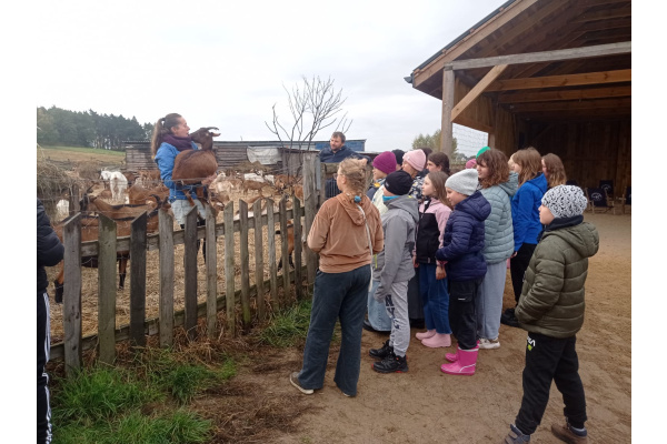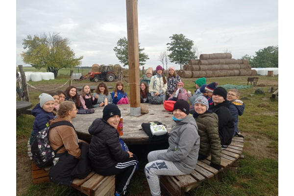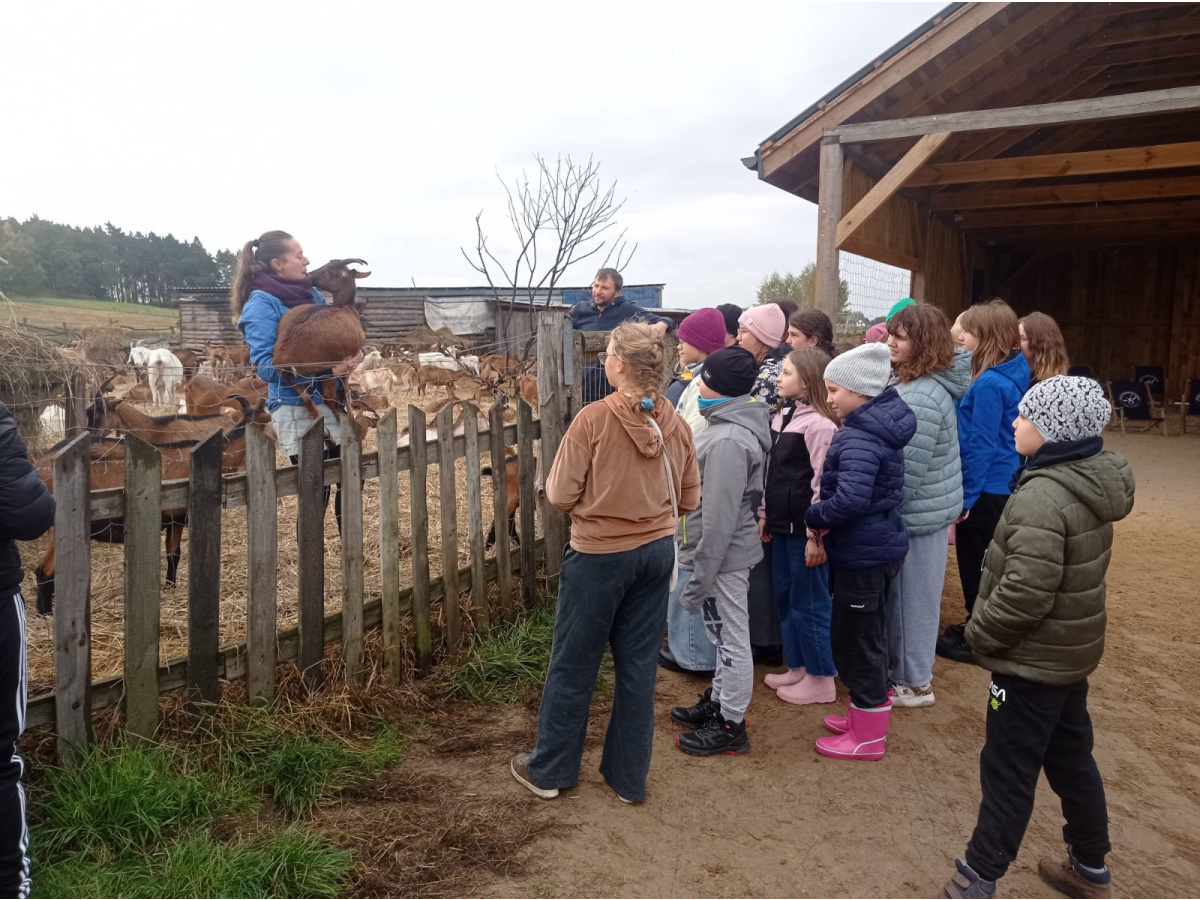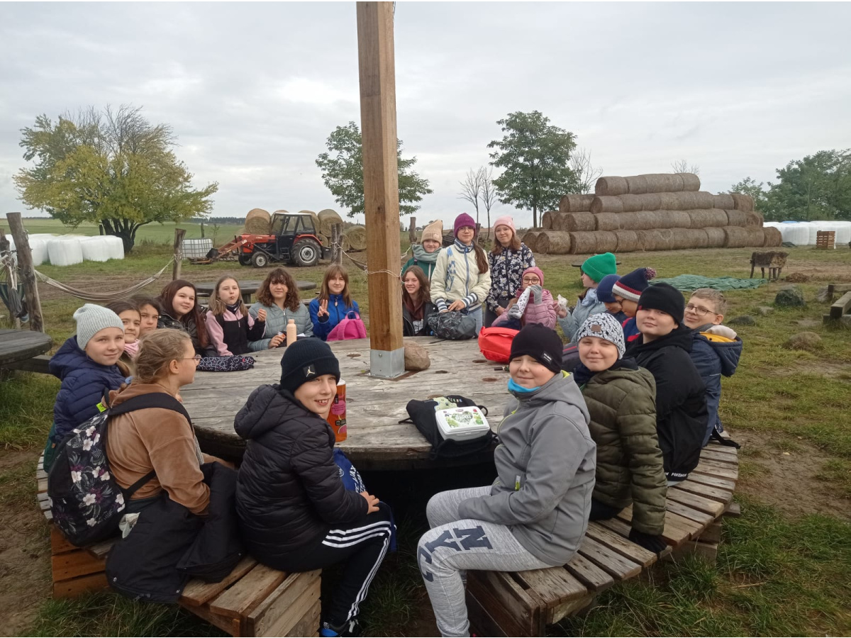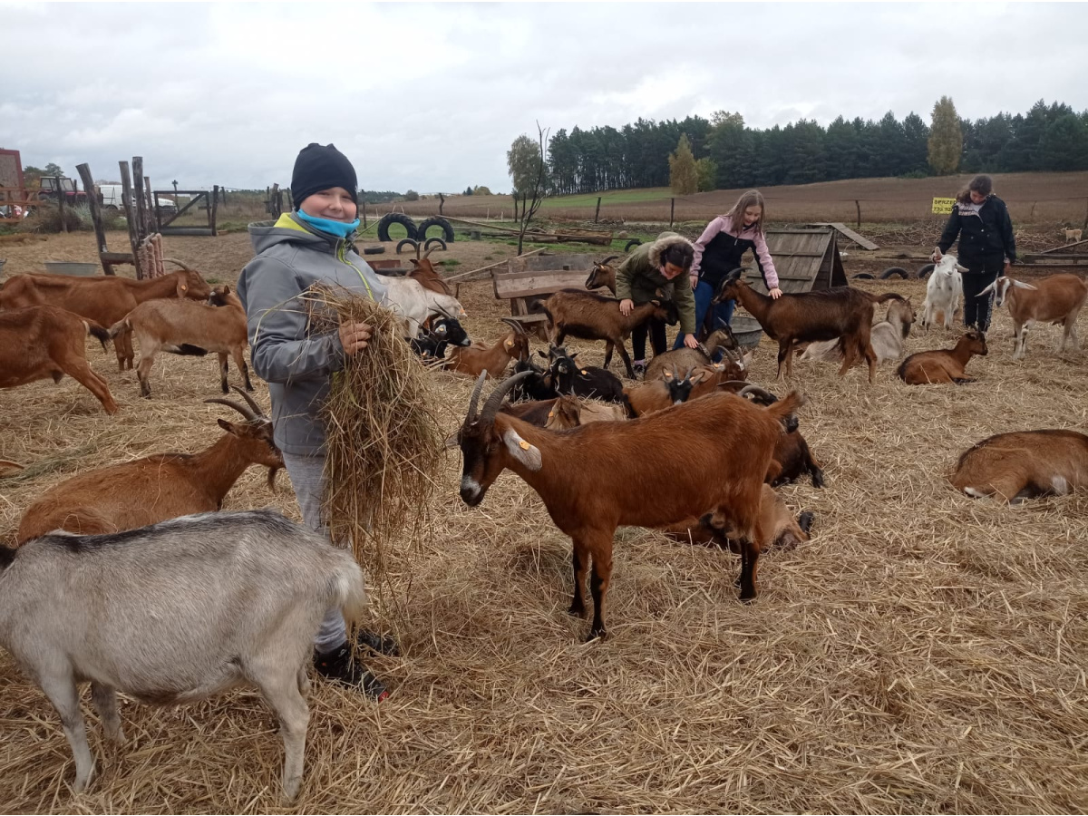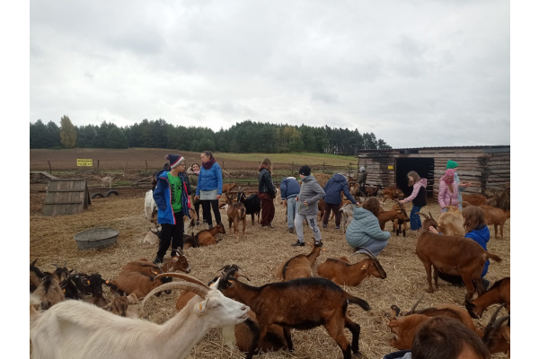Nie zabrakło również pysznych smaków! Uczniowie spróbowali koziego sera, a na zakończenie wyjazdu czekało na nich wspólne ognisko z kiełbaskami i pieczonymi ziemniakami.